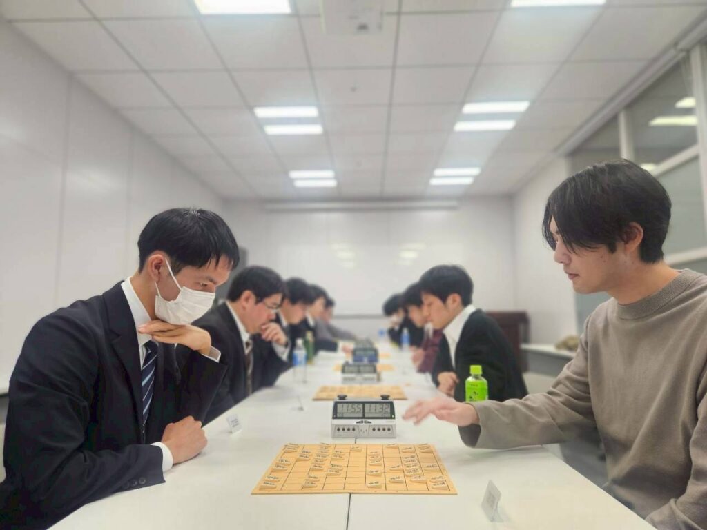 当日は春のやわらかな陽射しが差し込む中、会議室には将棋盤がずらりと並び、開始前から静かな緊張感が漂っていました。
