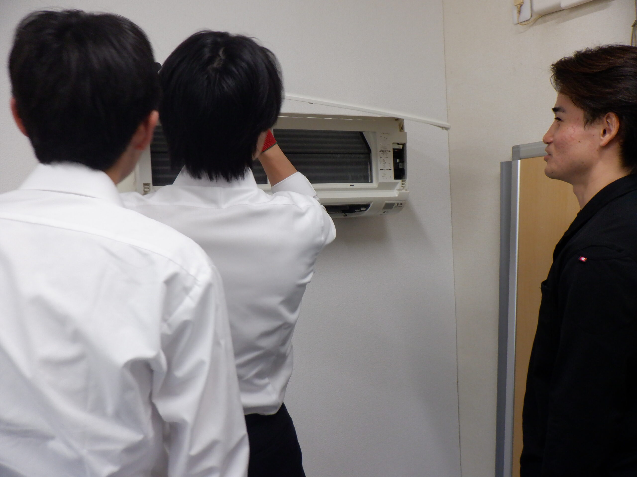 技術職の体験として、練習用のエアコンでエアコン洗浄の実践(分解→洗浄→組み立て)を行いました!エンジニアの社員の方が手厚くサポートしてくださり、普段することができない貴重な体験で、難しくも楽しい経験でした。