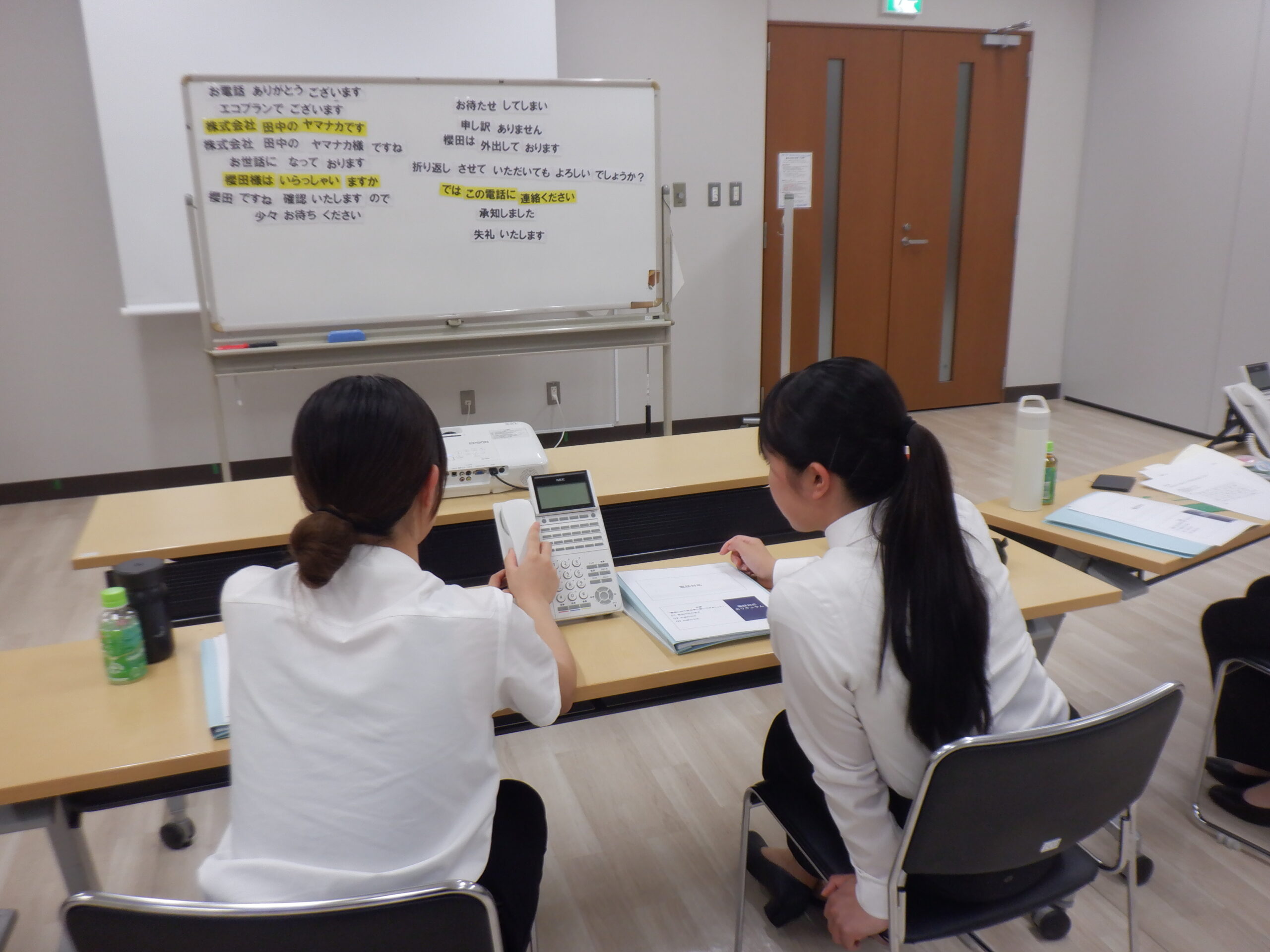 どの会社でも必要となる電話応対について学ぶことができます。先輩方がお客さんの役割をしてくれて実際の電話応対に近い経験をすることができます。しかも、最終日には実際にエコ・プランにかかってきた電話の対応をするためしっかりと教えてくれます。