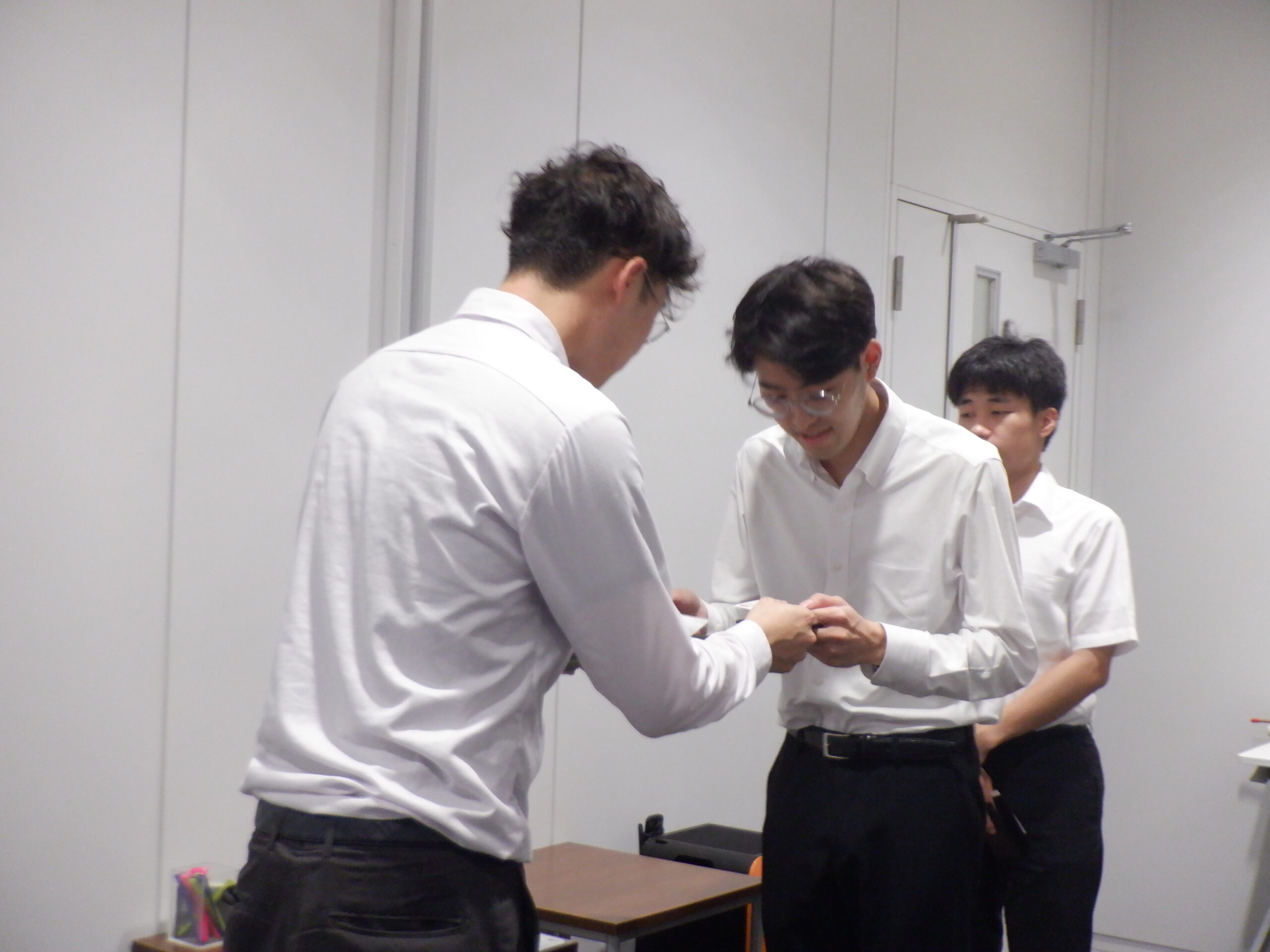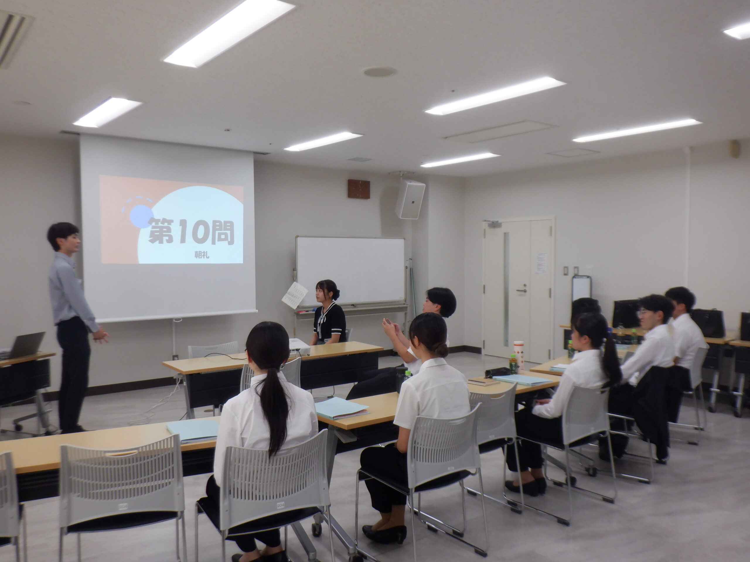 先輩社員方の実演クイズから、どこが間違っているのか、どのように直すべきかを考え、私たちもそれを実演することで体現的にビジネスマナーを学ぶことができました。