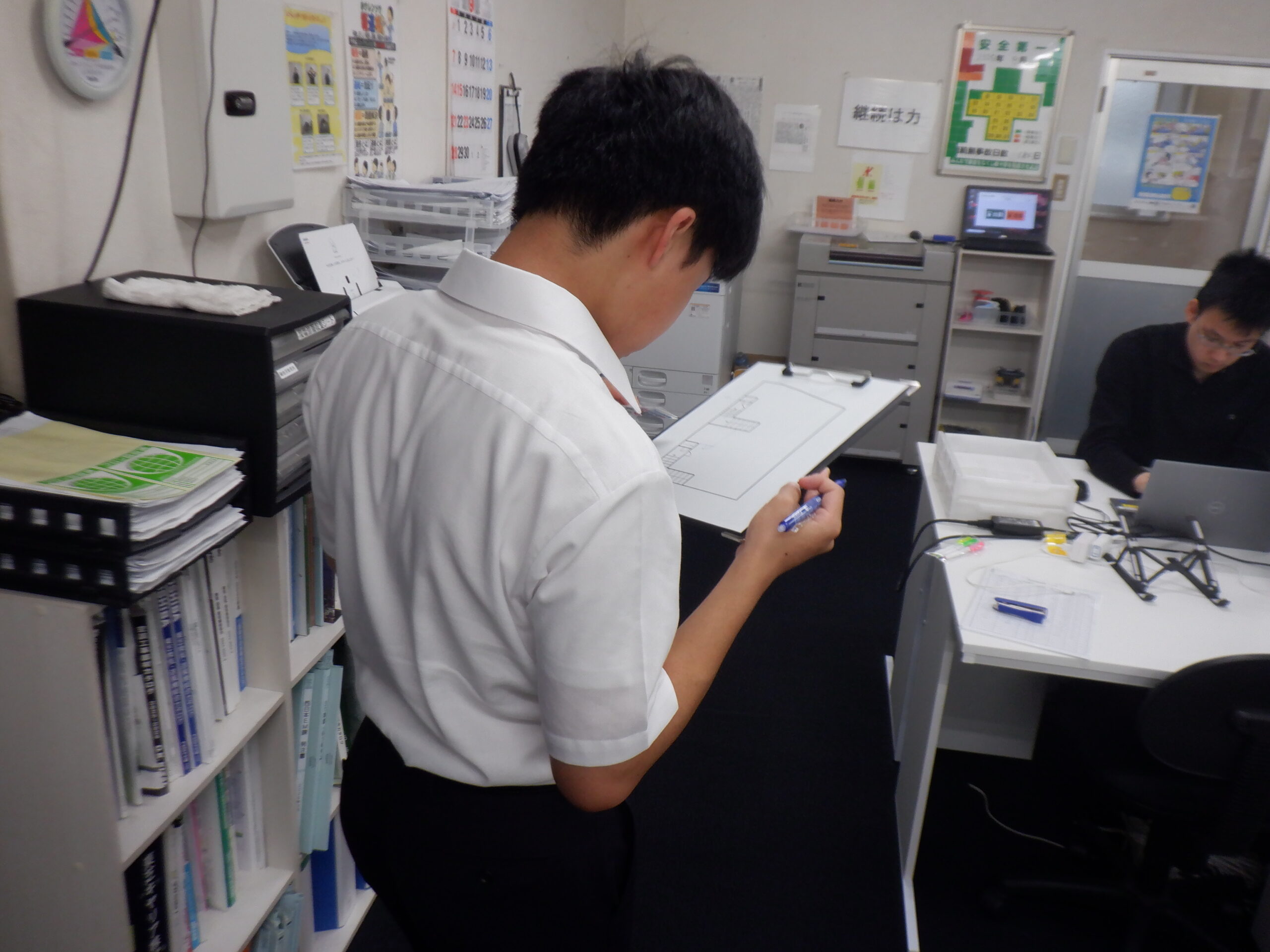 2日目に学んだ現場調査と調査票図面の作成を、実際の大阪CKTCの職場をモデルとしておこないました。やってみると、丁寧にかつ素早く書くことの大変さやエアコンの機器の知識の必要性を感じました。この調査票をもとに作業をおこなってもらうので、エンジニアの方やお客様にとっても大切な工程の一つです☺️
