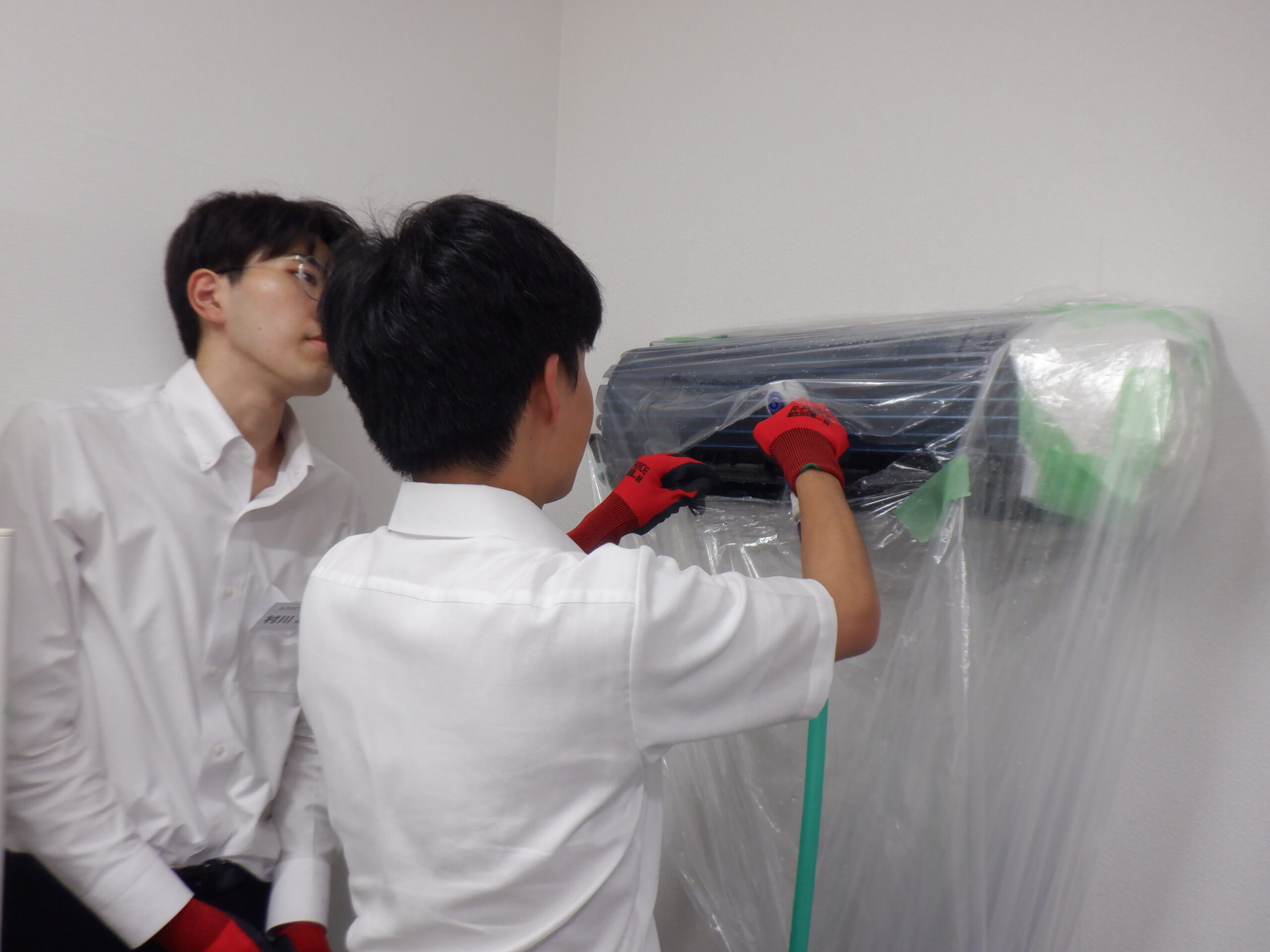 午前中には実際の職場の現場調査・調査票図面の作成をおこない、午後からはエアコン分解や洗浄、電気回路の作成といったエンジニア体験をおこないました。
