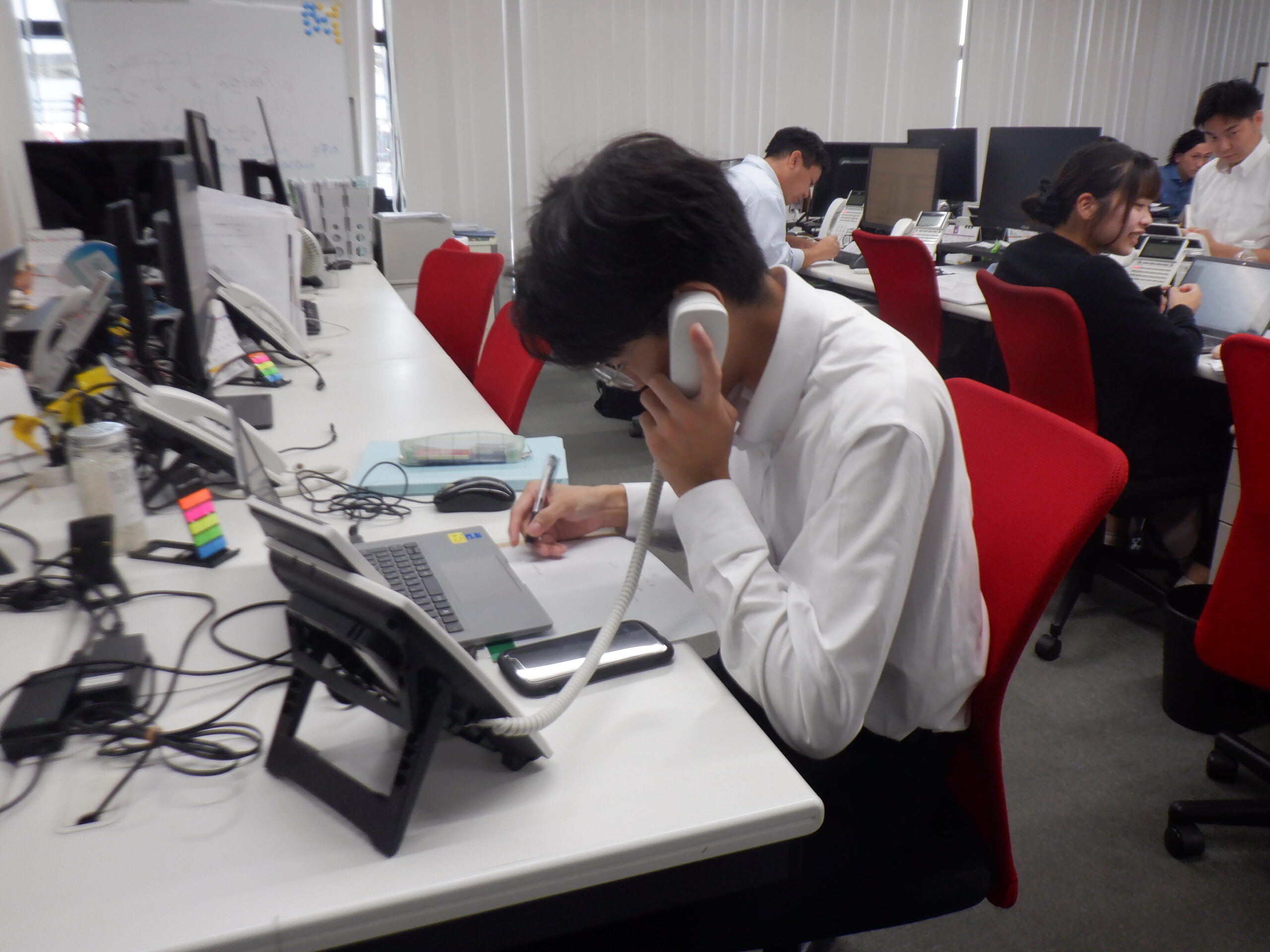 実際にエコ・プランにかかってきたお客様の電話を取ります。一日目の練習の成果を発揮することができます。電話を取ることは怖いですが、先輩社員の方が横にいてくれるため安心して電話応対をすることができます。