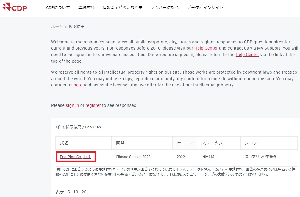 CDPの質問書の回答内容を閲覧するには、CDPのアカウントを作成し、サインインする必要があります。