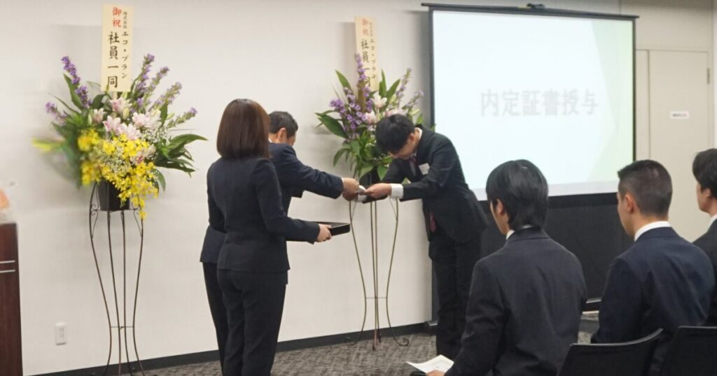 2025年11月6日(木)、株式会社エコ・プランではベルサール西新宿にて2025年度 内定式を執り行いました。