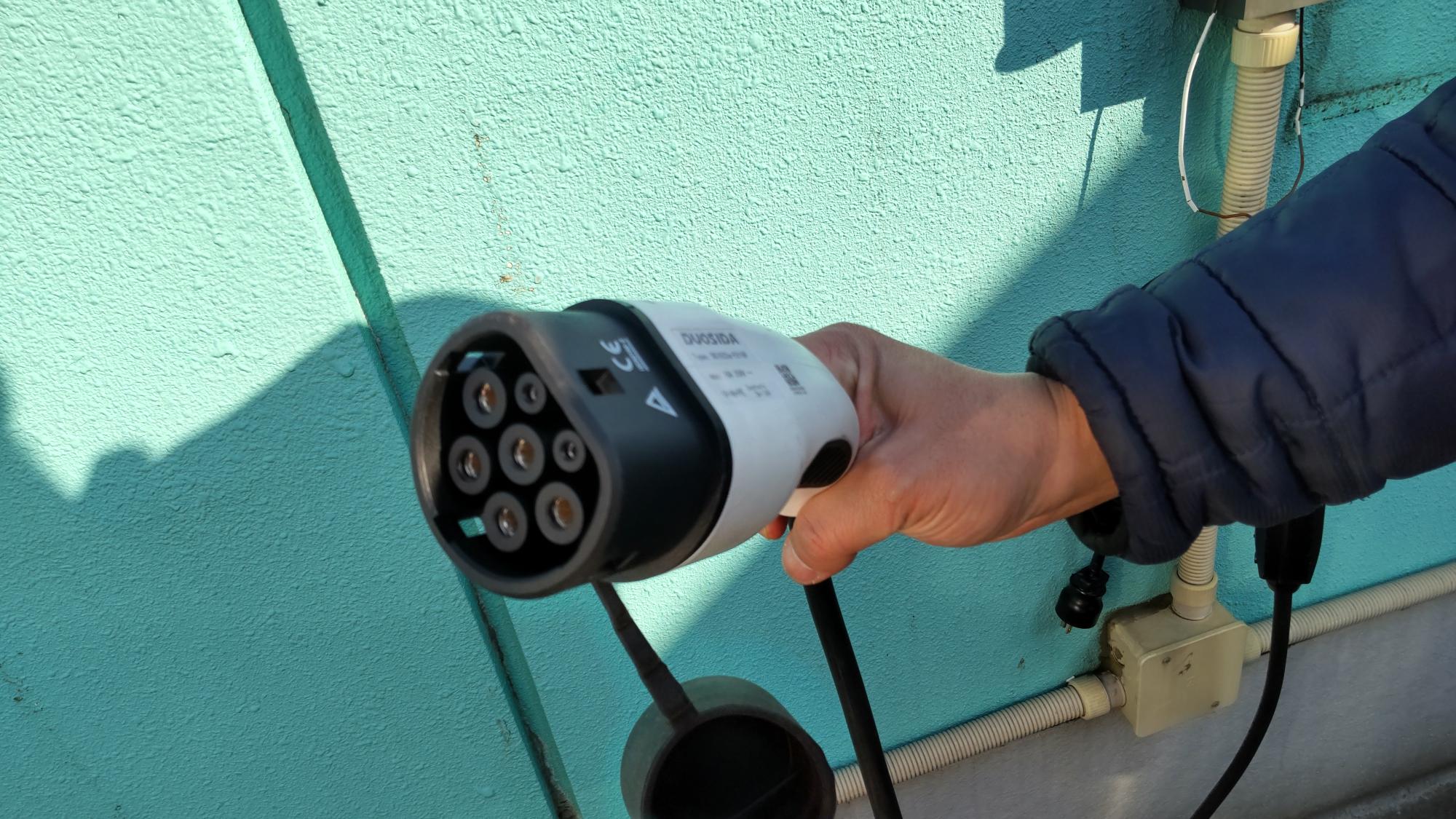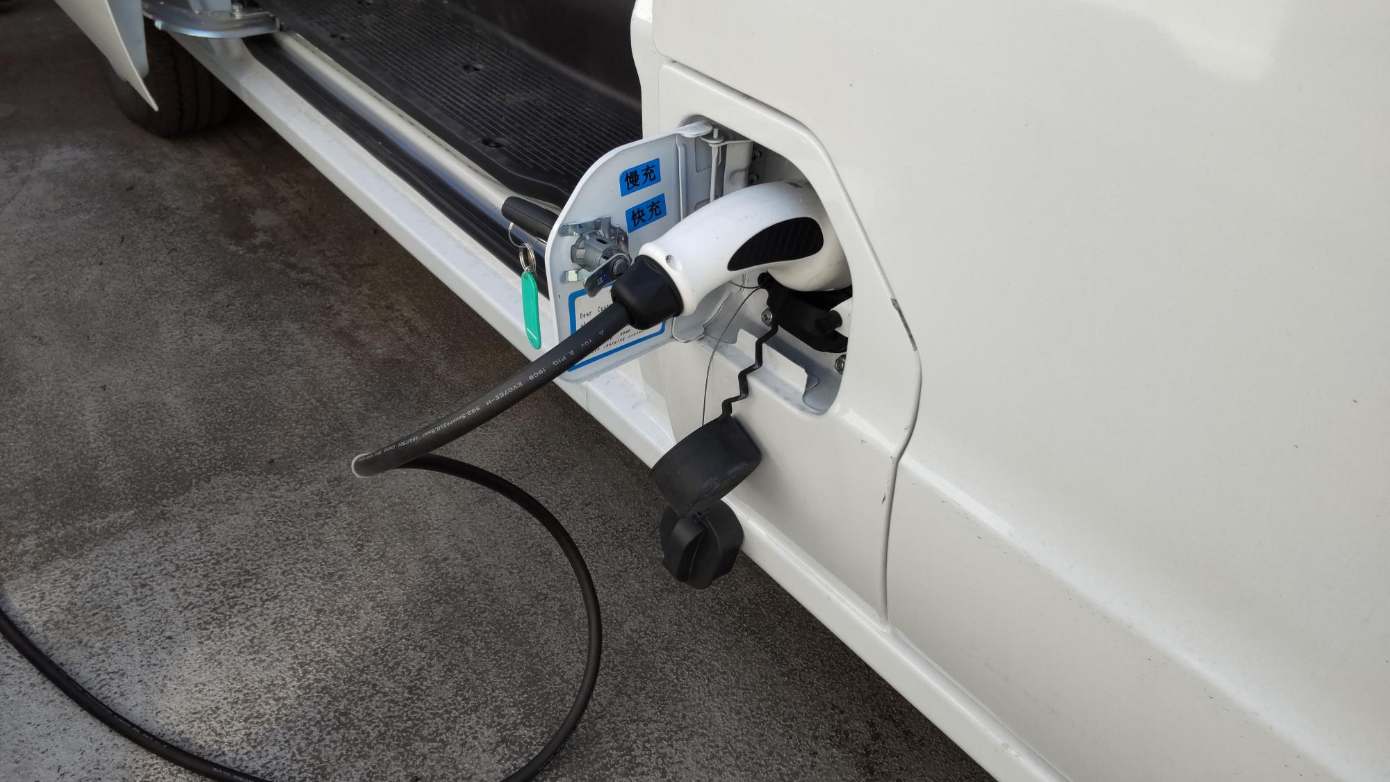 充電の規格がコンボツーというもので、日本のCHAdeMOとは異なるため、現状、街中の充電スポットでは充電できないタイプとなっていますが、アダプタを開発中で、近い未来、街中でも充電できるようになるということでした。