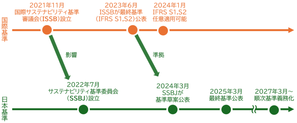 その後、SSBJは2024年3月に基準の草案を公表し、パブリックコメントの受け付け、再提案を経て2025年3月に最終基準が公表されました。