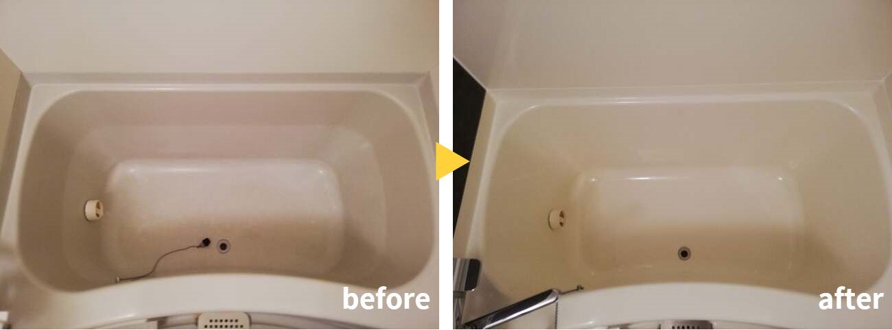 - 浴室内の落とせない汚れは再生塗装を行うことで新品同様な光沢・艶感のある仕上がりになりました。