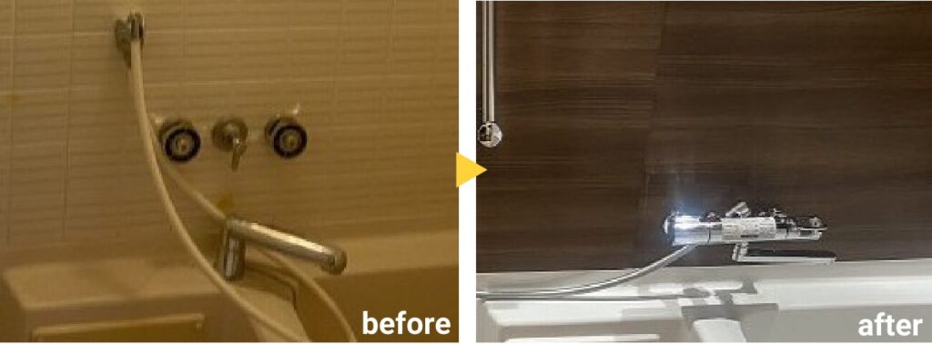 - 交換工事も含めて検討してて、埋め込み型サーモ水栓を壁付けサーモ水栓にしたい