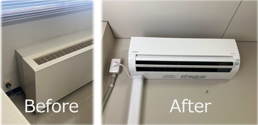 これらの課題を踏まえ、弊社では『日立製の壁掛けタイプのルームエアコンを新しく導入』するご提案をいたしました。