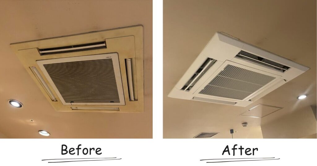 大阪府大阪市にある『ぼてぢゅう 天保山店様』にて、エアコン更新工事を行いました。