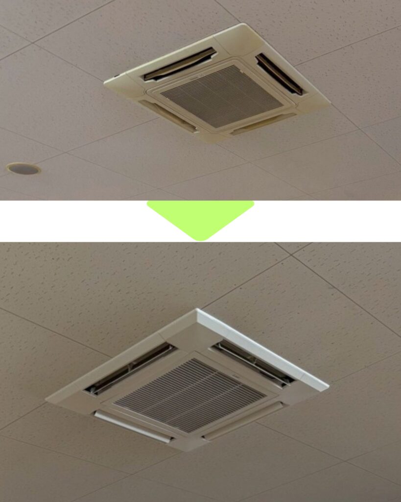 こちらの店舗様では、エアコンを長年使用されていましたが、徐々に経年劣化が見られるようになっていました。そこで、特に多くの方がお使いになるトレーニングスペースのエアコンの入替をご提案させていただきました。