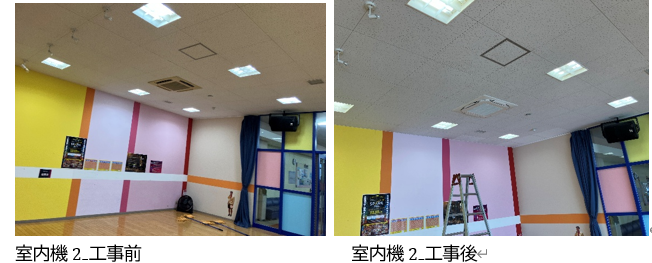 設備自体は一時的に正常運転していたものの、今後の安定運転や突発的な故障リスクを考慮し、空調機の入替をご提案させていただき、室外機1台・室内機2台の入替工事を実施いたしました。