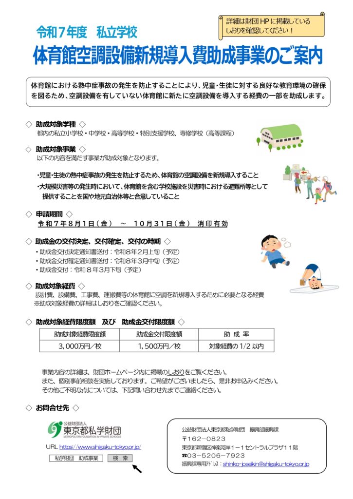 私立学校体育館空調設備新規導入費助成事業