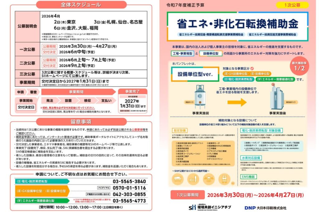 2026年3月25日(水)に、『【令和7年度補正予算】省エネ・非化石転換補助金(設備単位型)』の公募要領が公開されました。
