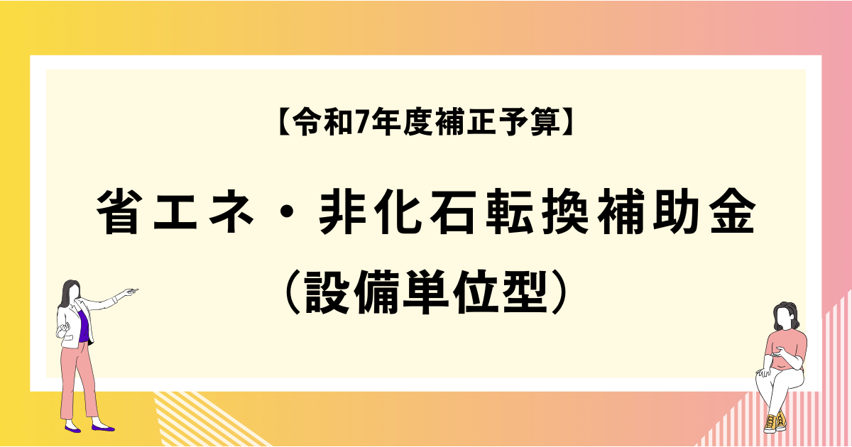 2026年3月25日(水)に、『【令和7年度補正予算】省エネ・非化石転換補助金(設備単位型)』の公募要領が公開されました。