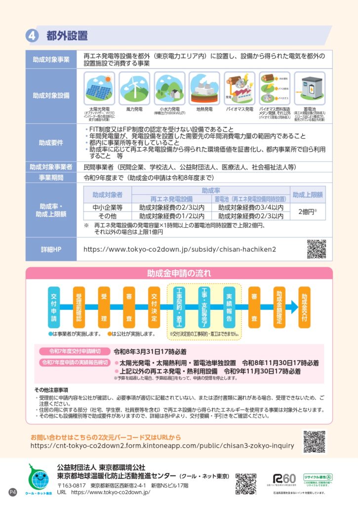 2026年4月1日(水)に、『地産地消型再エネ・蓄エネ設備導入促進事業(都内設置・蓄電池単独設置)』の公募要領が公開されました。