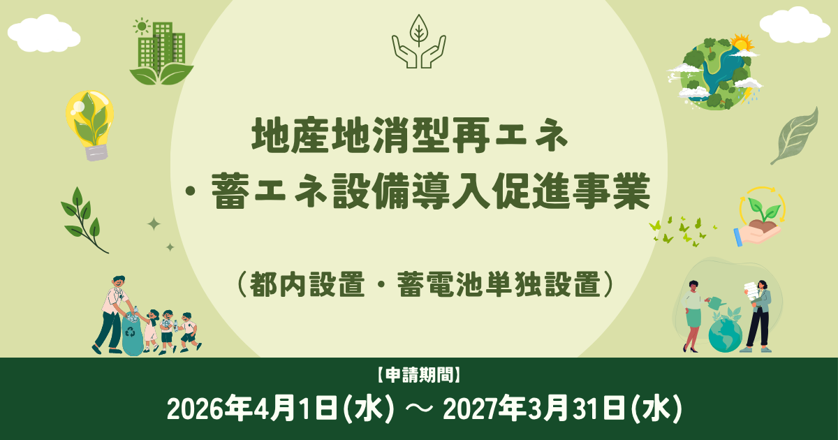 2026年4月1日(水)に、『地産地消型再エネ・蓄エネ設備導入促進事業(都内設置・蓄電池単独設置)』の公募要領が公開されました。